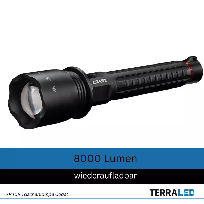 Coast XP40R wiederaufladbare Taschenlampe mit PowerIQ Real-time Display 8000 lumen