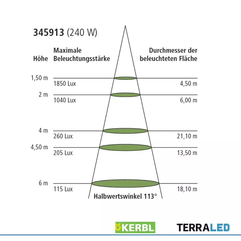 • Leuchtstärke: 160 Lumen pro Watt, gesamt 32.000 Lumen