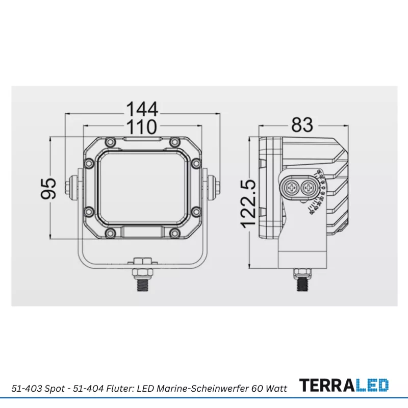 LED Marine-Scheinwerfer 60 Watt Fluter / Spot