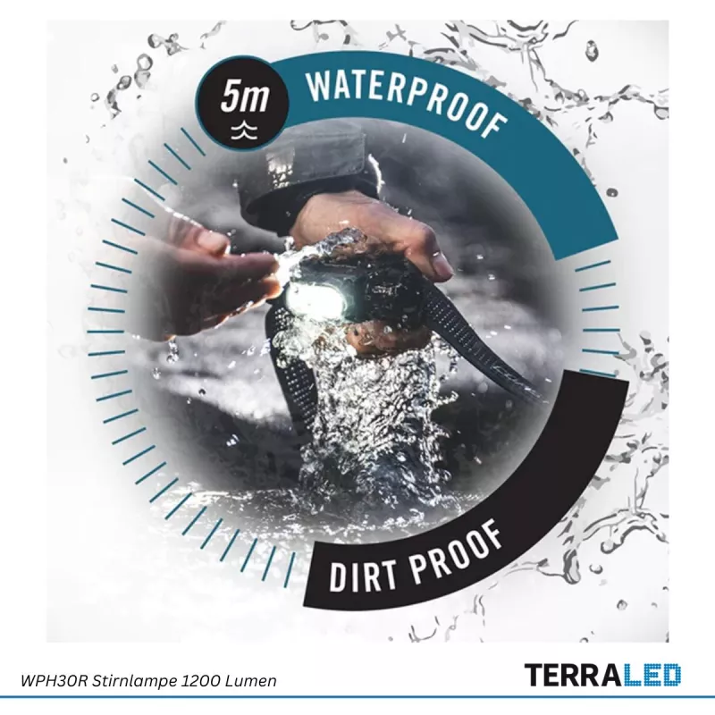 LED Stirnlampe WPH30R 1200 Lumen wiederaufladbar