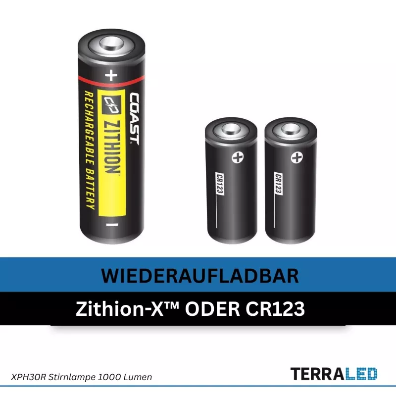 Rechargeable Plus mit COAST ZITHION-X™ Akku (ZX850) oder 2 x CR123 Batterien