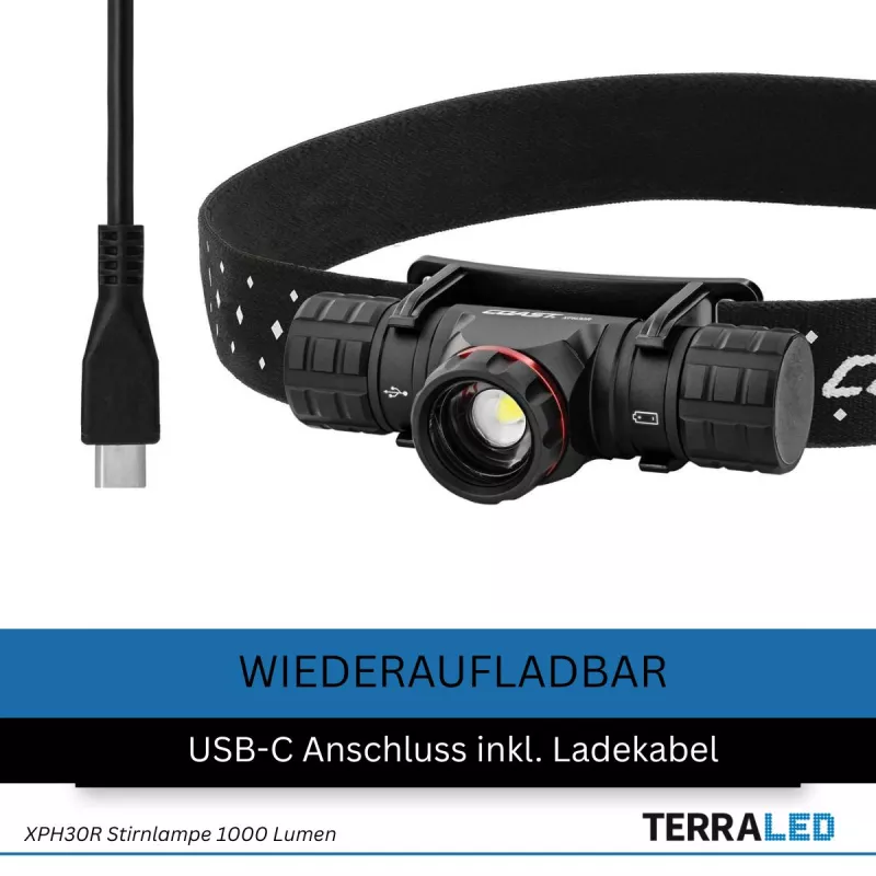 LED Stirnlampe XPH30R 1000 Lumen wiederaufladbar